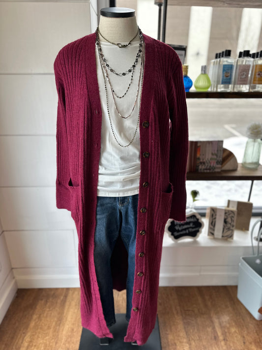 Filled With Hope Duster Cardigan ~ Wine