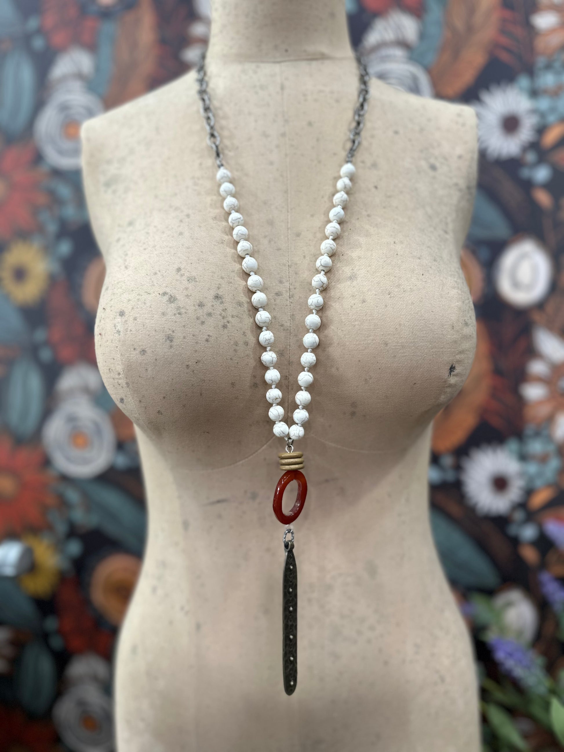 Add a playful twist to your look with the Better Than Ever Beaded Necklace. Featuring white marbled beads strung on a silver chain, it’s accented by a bold rust acrylic oval and a charming bronze oval pendant. Finished with a secure lobster clasp, this necklace brings fun and flair to any outfit.