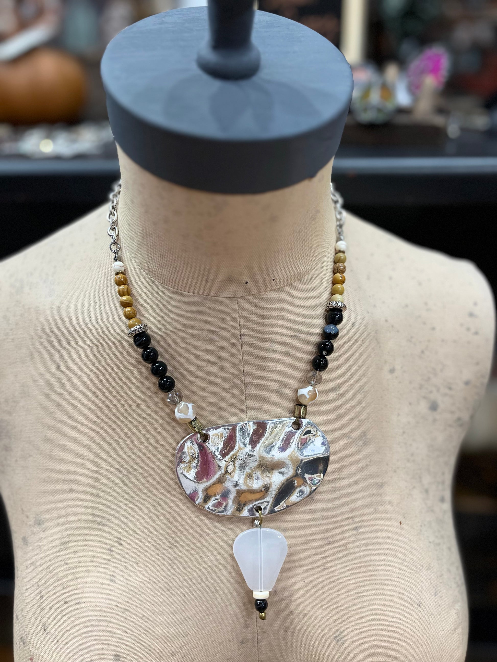 Indulge in the allure of this beautiful hammered bib necklace, created with utmost care and creativity. It's an artful blend of modern design and bohemian soul, waiting to become a cherished piece in your jewelry collection.