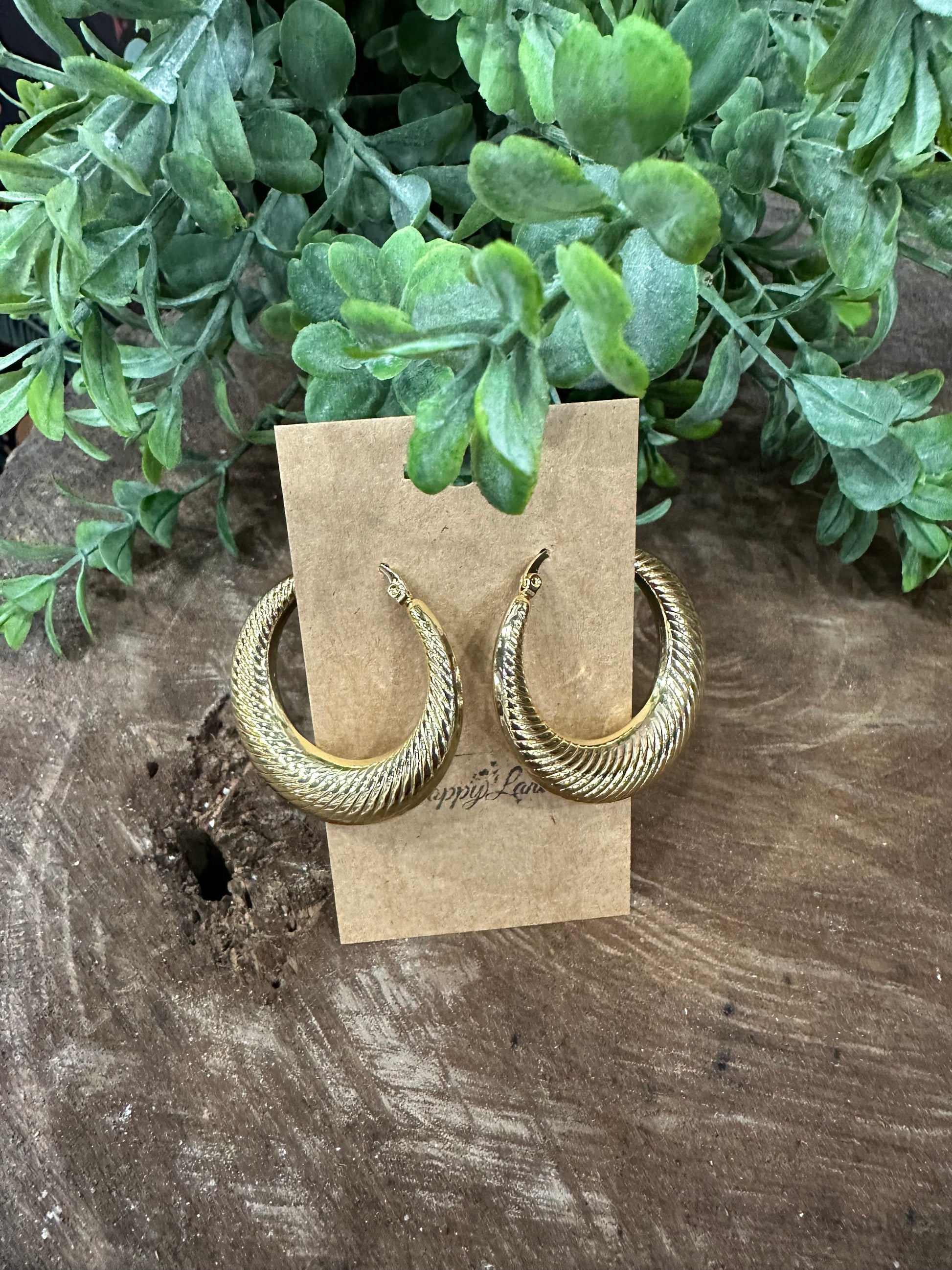 These charming gold hoops bring a touch of nostalgia with their textured finish and effortless elegance. Designed with a secure French clip closure, they're perfect for all-day wear without the weight. The lightweight construction makes them comfortable enough to forget you're wearing them, while the warm gold tone and subtle texture add just the right amount of sparkle to any look. A timeless style that always finds its way back into rotation.