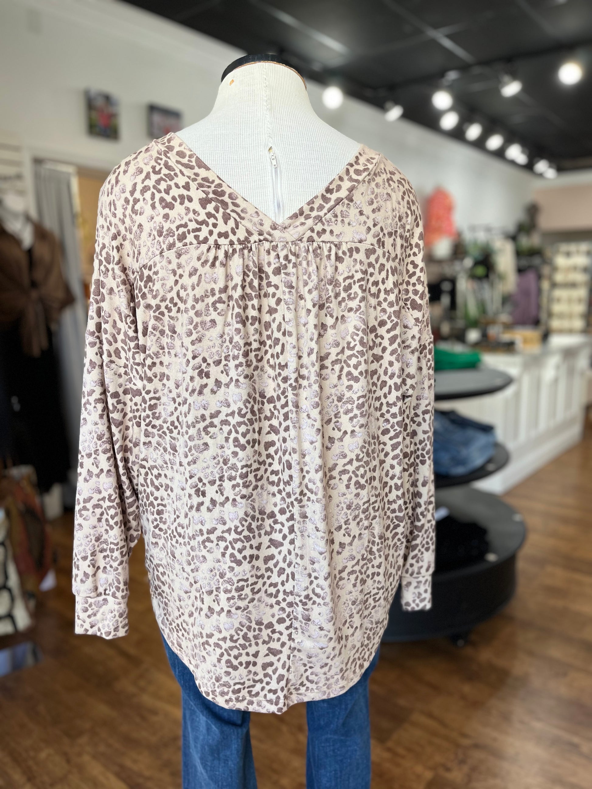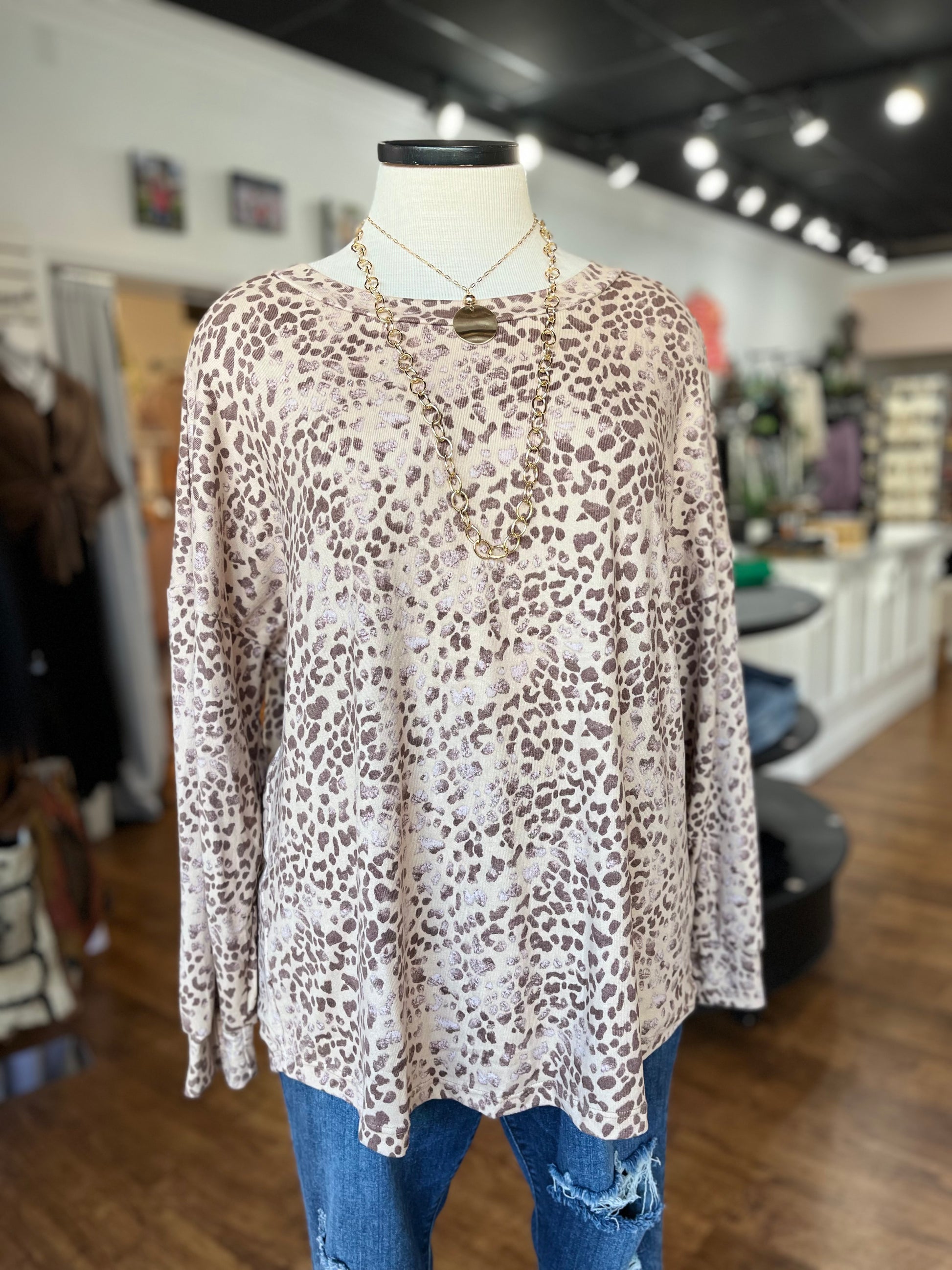 Unleash your wild side with our Expert Kindness Leopard Print Top. This top features a trendy leopard print design on an oakley knit tee, perfect for any occasion. With long sleeves and a front round neckline, paired with a unique back v-neckline, this top is both stylish and comfortable. Upgrade your wardrobe with this must-have piece.