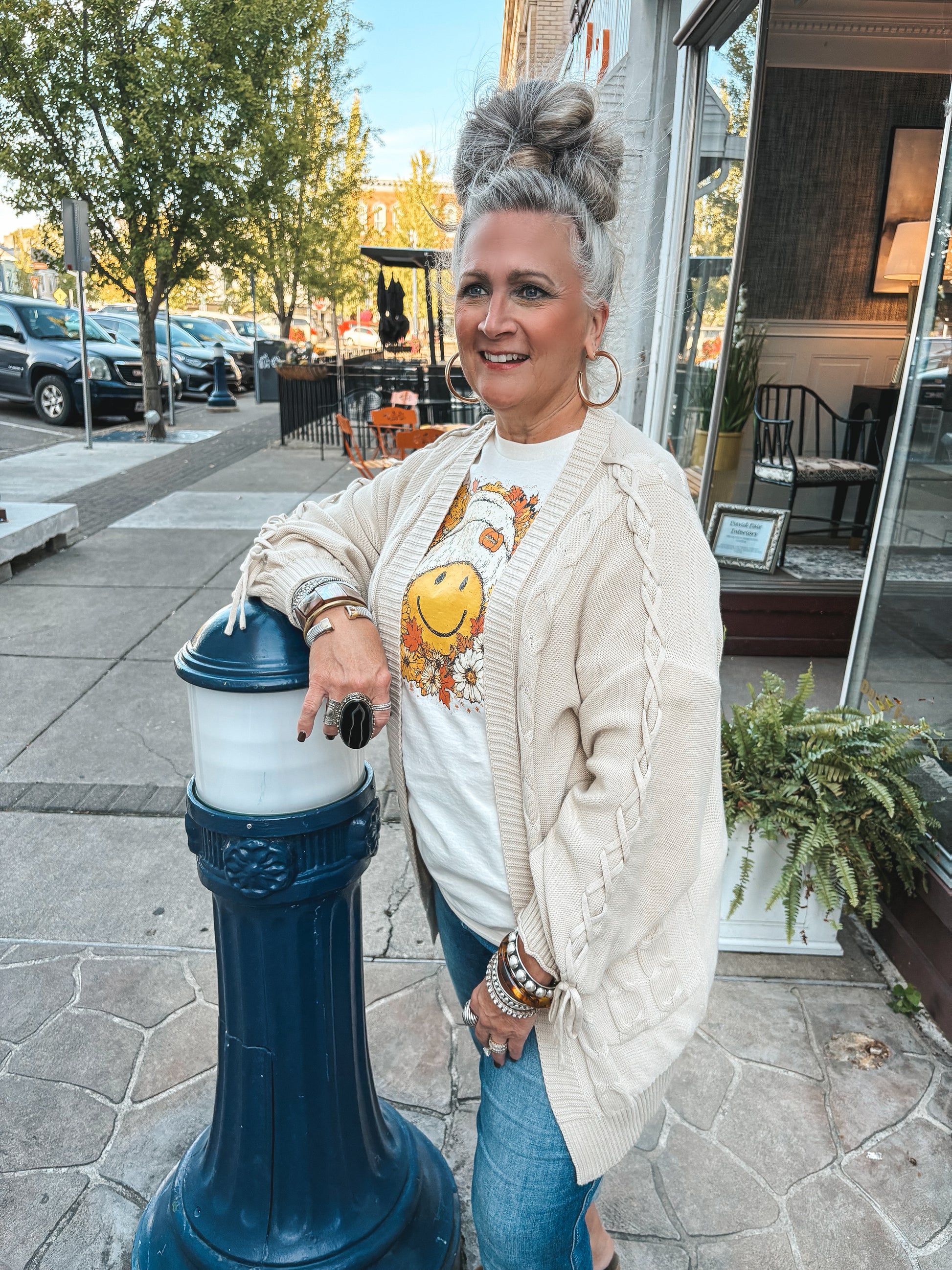 Wrap yourself in cozy charm with the Going Places Cable Knit Cardigan. Featuring playful braided details on the sleeves and convenient pockets, this open-front layer is perfect for mixing and matching with all your favorite outfits. Its neutral shade effortlessly pairs with everything, making it your new go-to for stylish warmth wherever you roam.