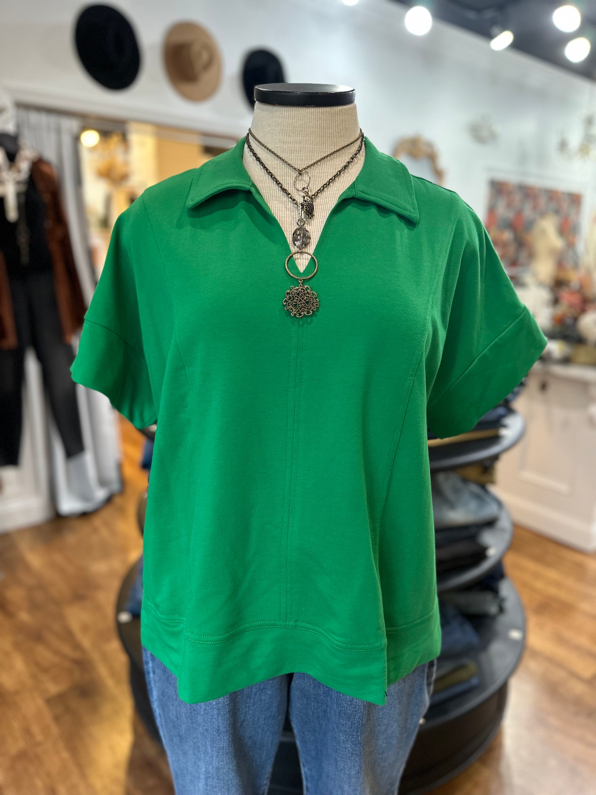 The Have My Back Short Sleeve Top combines playful charm with comfort. Featuring a flirty V-neckline, turn-down collar, and cute cuffed sleeves, this soft, lightweight top offers a relaxed fit that flatters every figure. Perfect for keeping it breezy and stylish all day long!