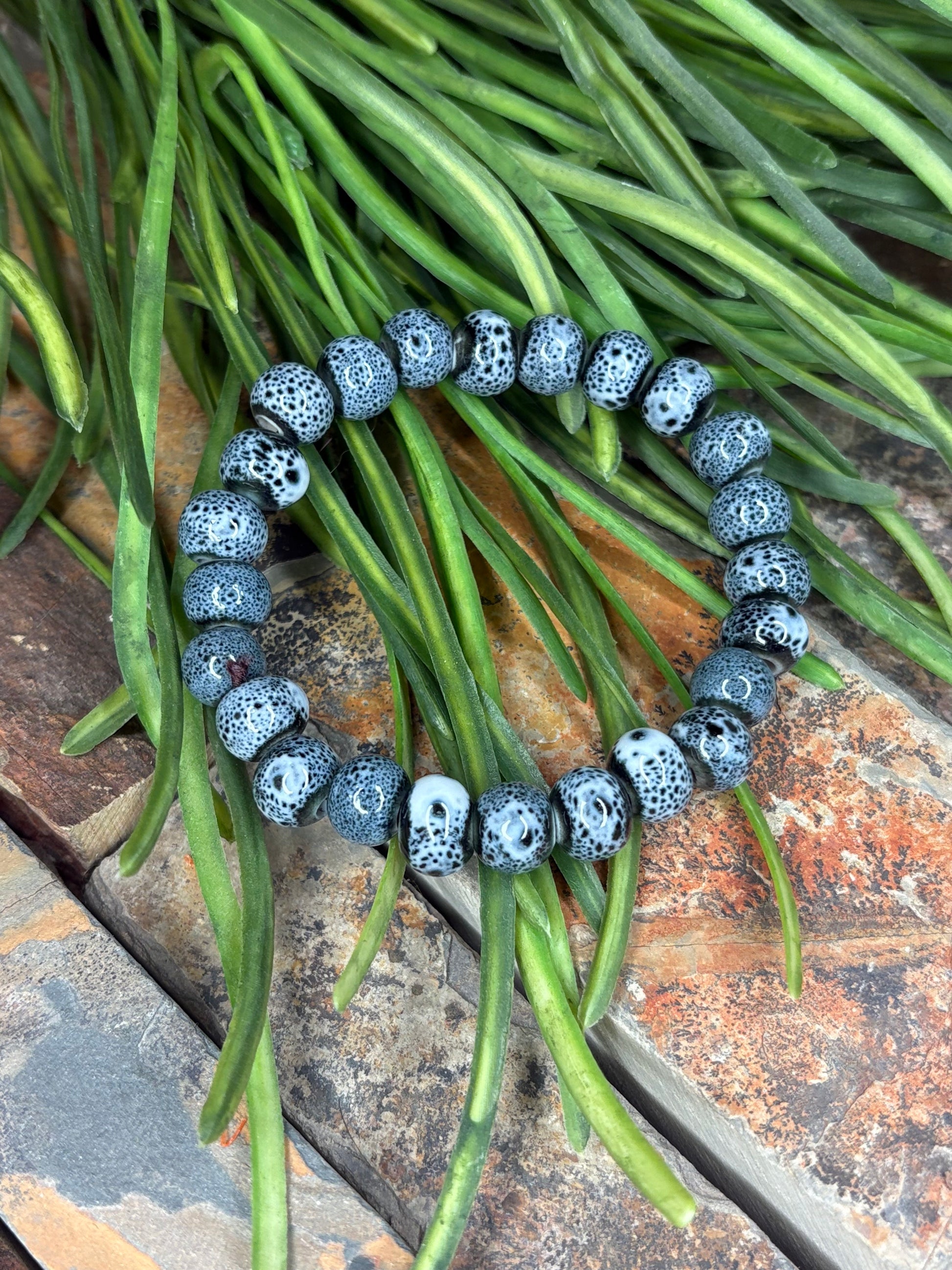 Slip on this charming beaded bracelet and let your wrist do the talking! Each ceramic bead is lovingly handcrafted, creating a one-of-a-kind piece that's as unique as you are. The stretchy elastic design means effortless on-and-off wear—no clasps, no fuss, just pure style. Perfect for layering with other bracelets or wearing solo, this earthy beauty pairs with everything from casual tees to your favorite dresses. A little reminder that you're always in your element.