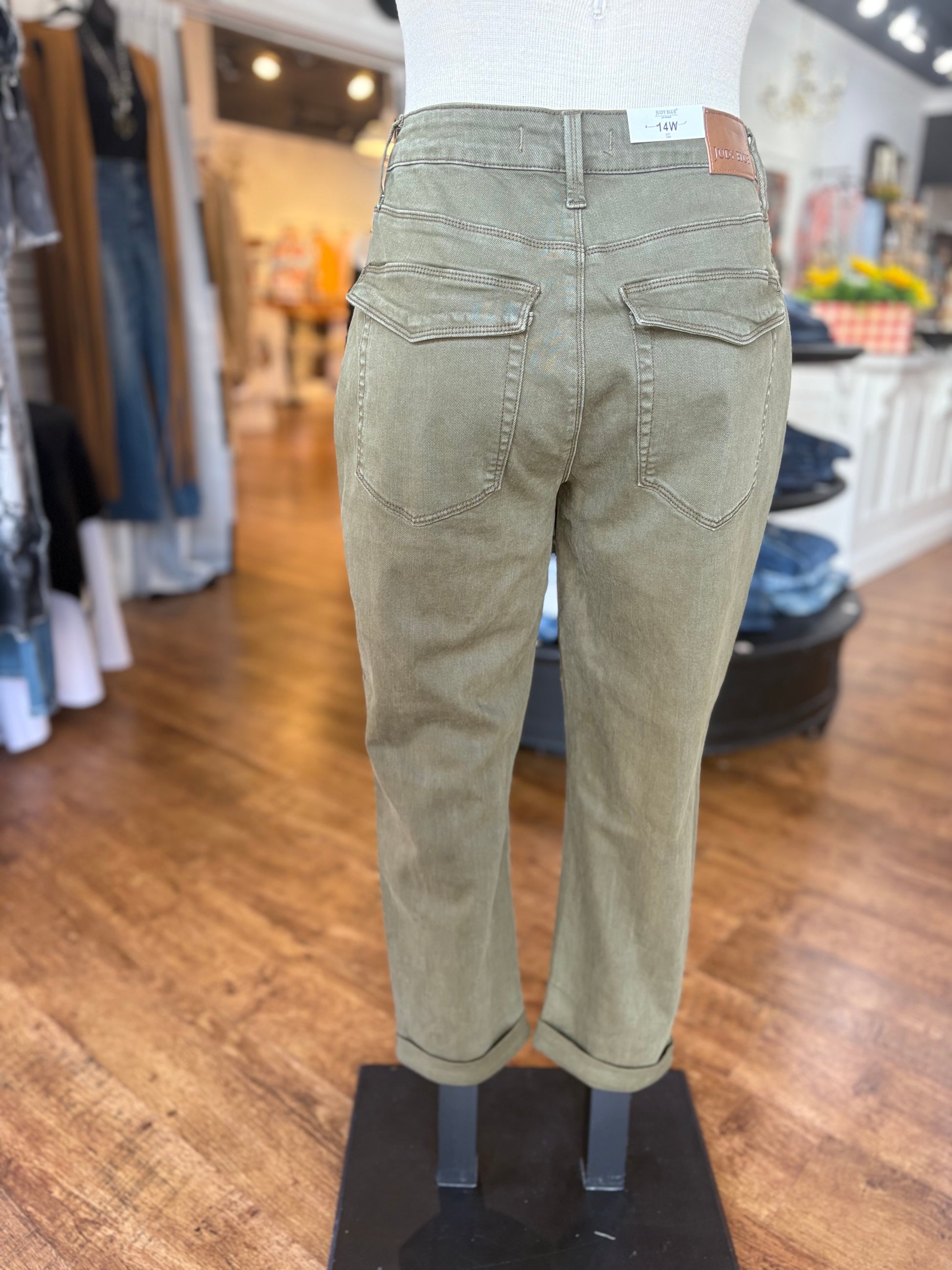 Step out in style with the Judy Blue High Waist Aurora Weekender Cuffed Jean in a stunning olive green shade. These jeans offer versatile wear—rock them cuffed for a casual vibe or uncuffed for a sleek look. Featuring a comfy stretchy fit, button closure, and handy front pockets, they’re perfect for weekend adventures or everyday fun.