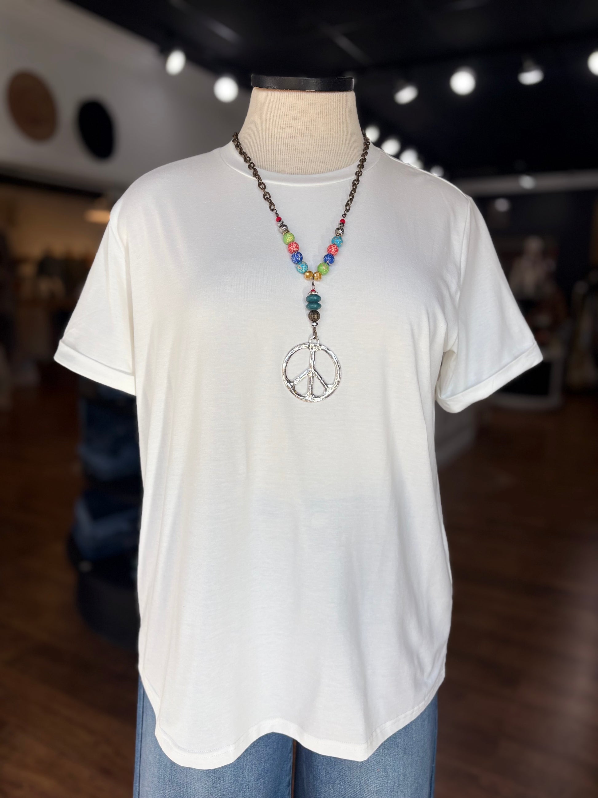 This Keep It Casual Tee Shirt in white features soft, breathable fabric that keeps you comfy all day. With its playful cuffed short sleeves and classic fit, it’s perfect for laid-back vibes and effortless style.