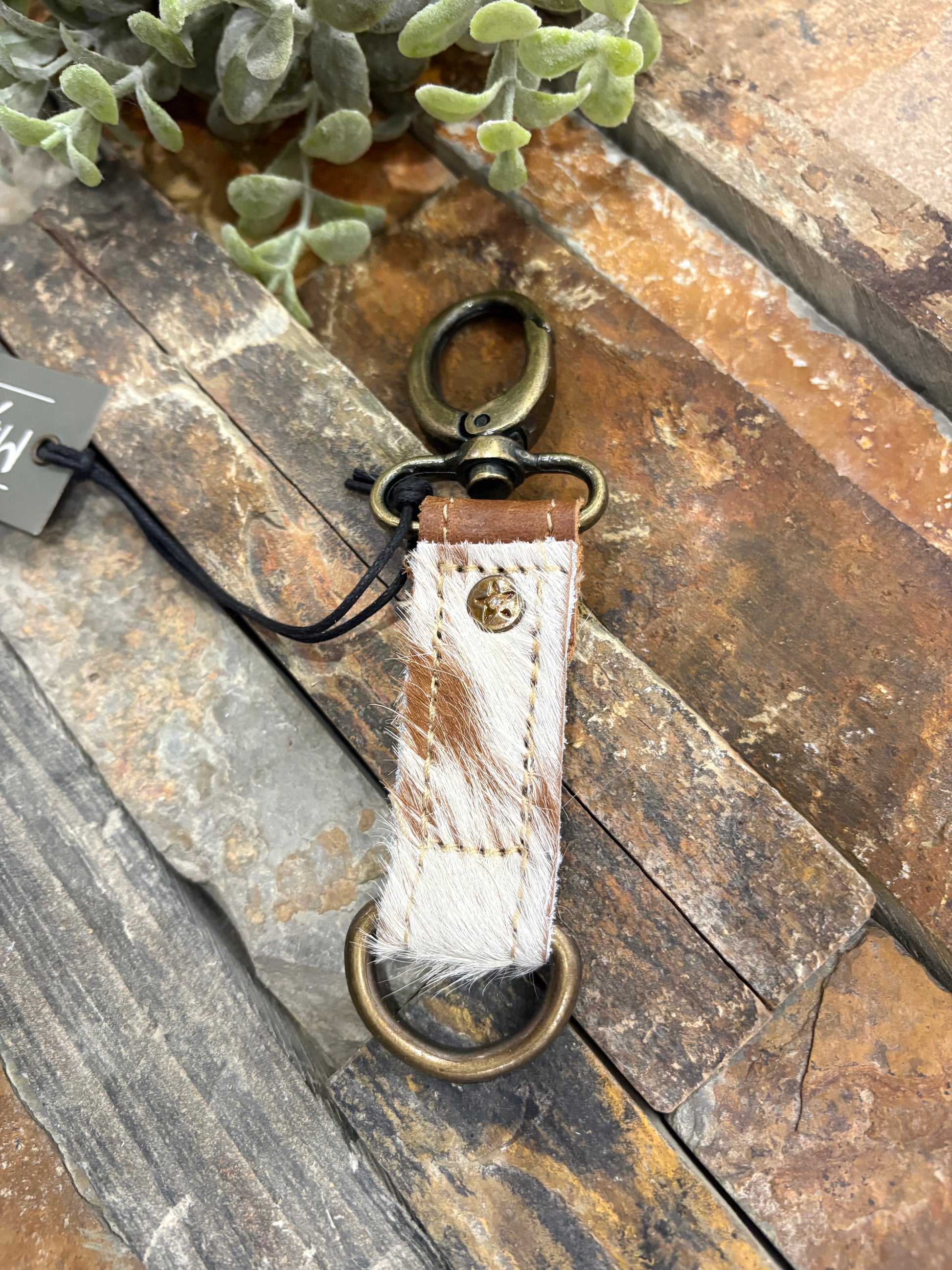 Key Fobs make great gifts! Teachers, co-workers, neighbors, young moms, teenagers, and anyone who needs to keep their keys handy while keeping their hands free, would love one of these key fobs. This beautiful key fob is made from combination of canvas and leather.