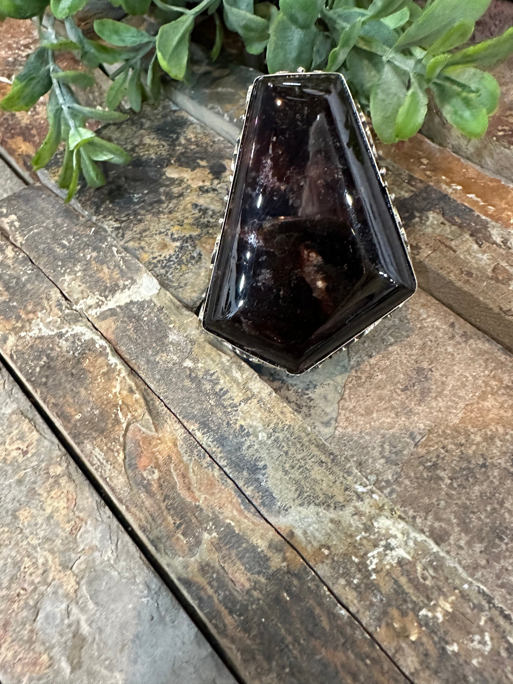 Express your love with this "Nuts About You" adjustable ring. The chocolate brown stone, in a unique shape, is set in an antique silver band. Perfect for the playful and quirky, it's a sweet gift for that special someone.