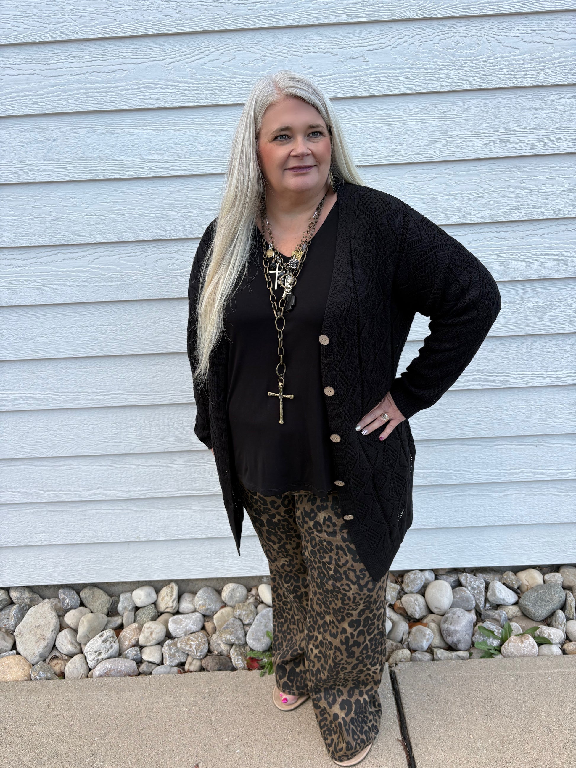 Cozy meets cool in this Plain Sight Open Knit Cardigan. With its breezy open knit and longer length, it’s perfect for layering over your favorite tops. The playful side slits and long sleeves add an easygoing vibe, while the button-up front and flattering v-neckline keep things chic. Slip it on for an effortlessly stylish look that’s ready to go wherever you do!
