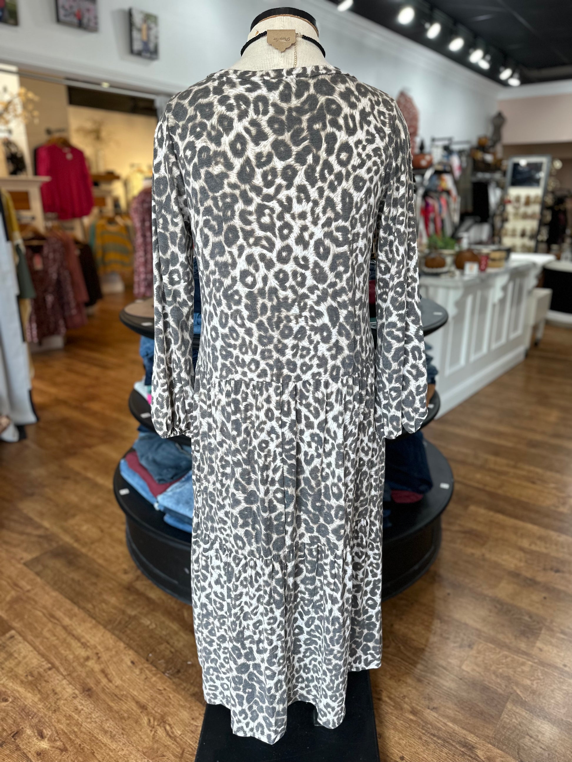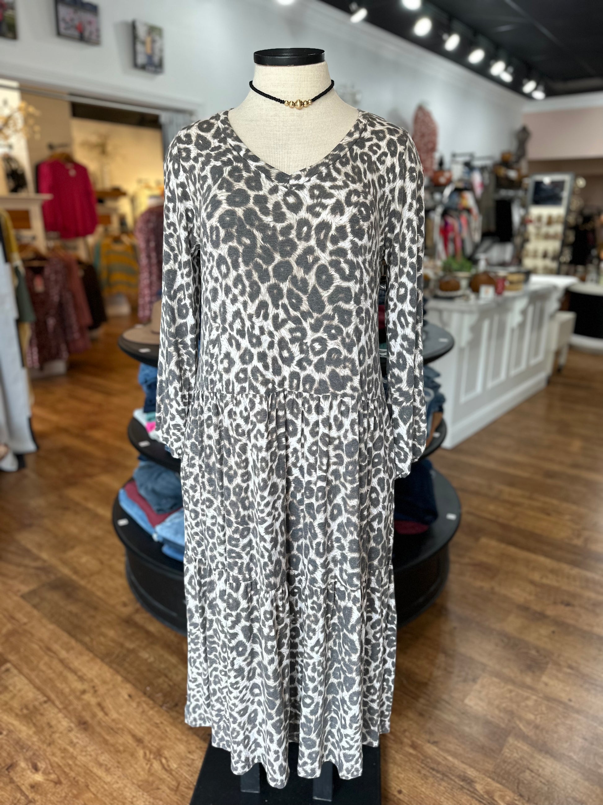 We know you are always on the search for fun dresses which is why we are so excited to present you with this beauty! This bold leopard print dress is truly fabulous! The print is so trendy but it's also that fit that caught our eye! The material is so comfy, you will be reaching for this dress over and over. This dress feature a v-neckline, long sleeves, pockets, a tiered body, a leopard print, and soft comfy material.