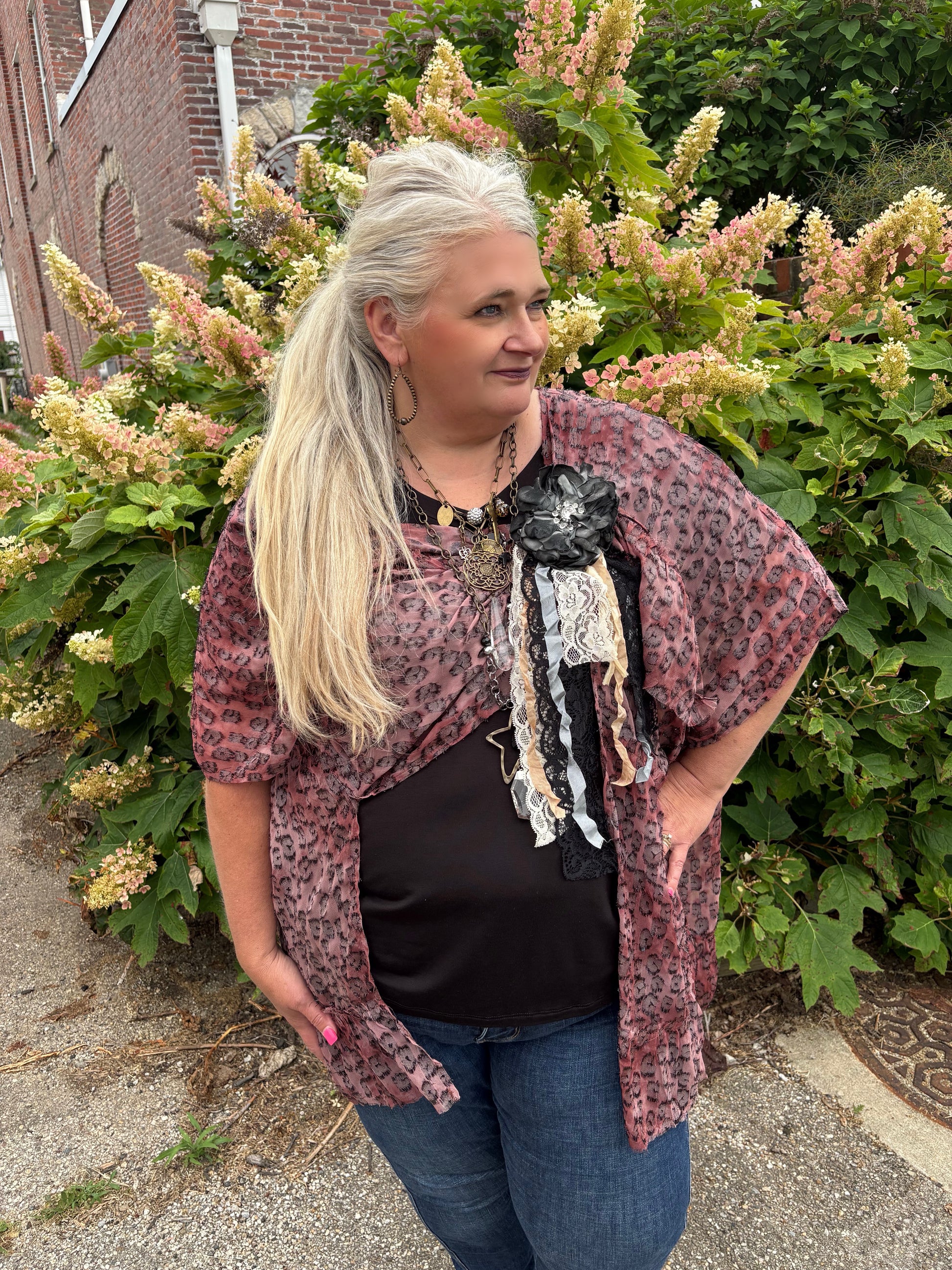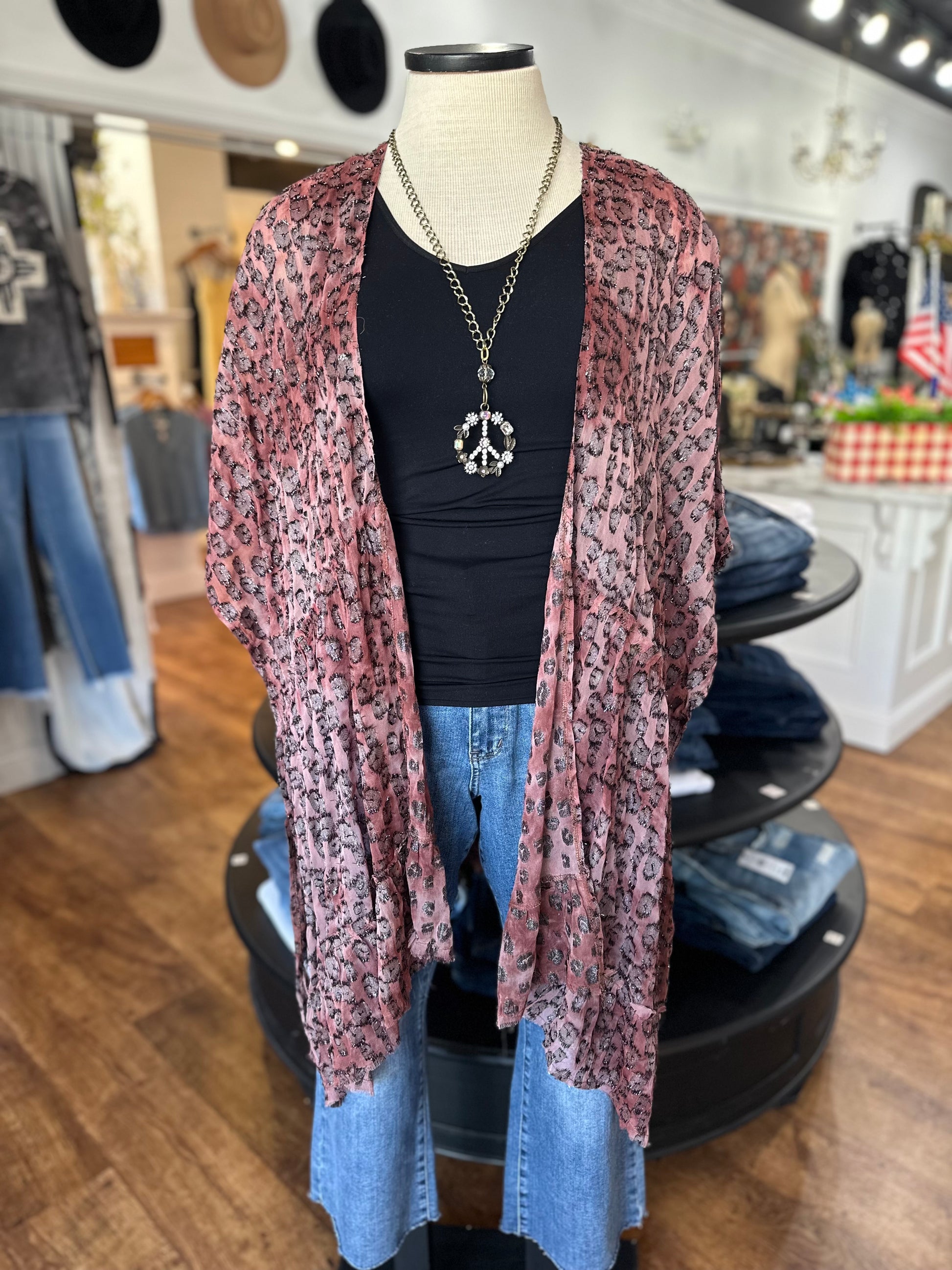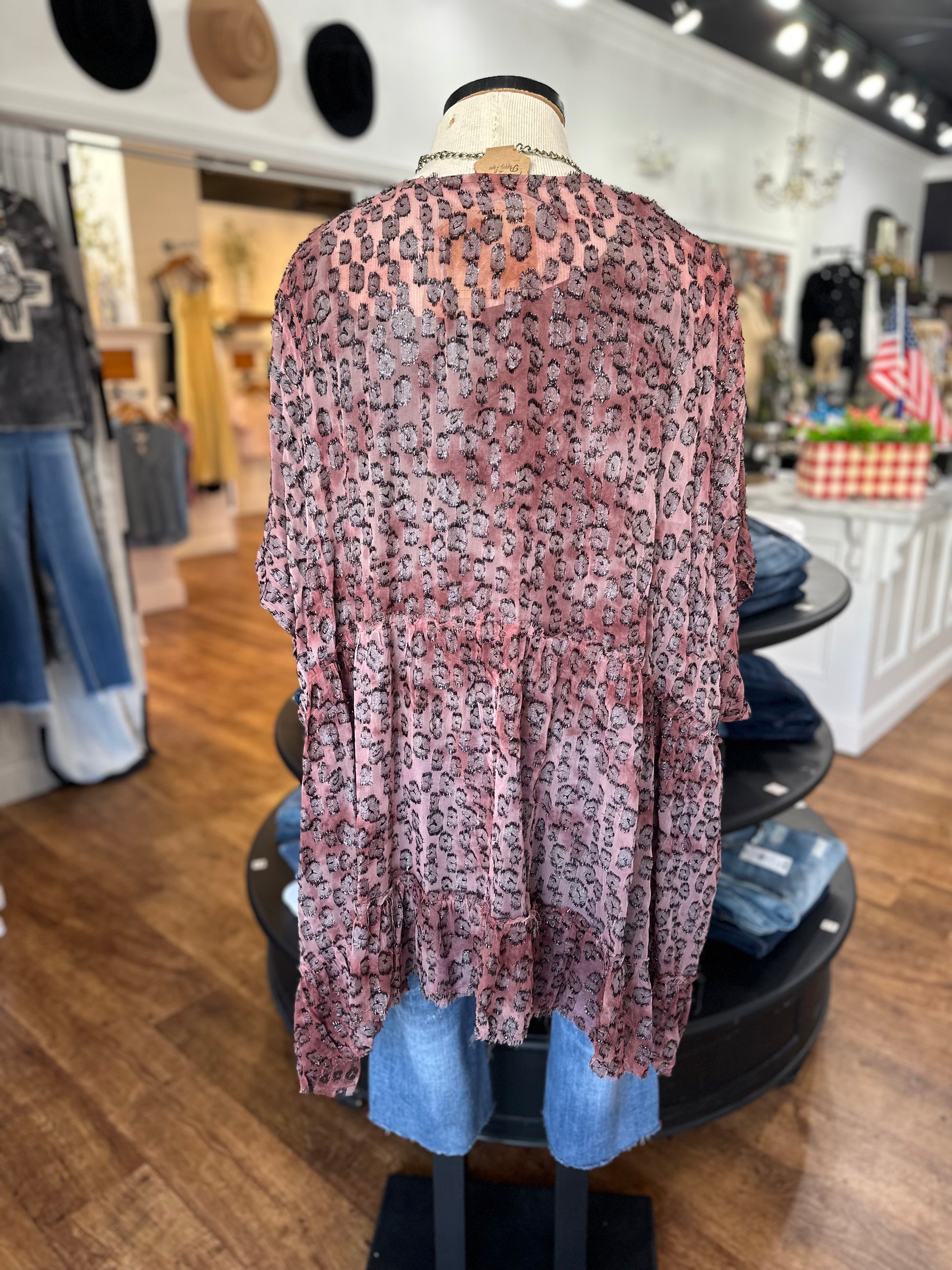 Add a splash of wild style to any outfit with this Sheer Dyed Leopard Kimono. Lightweight and breezy, it features playful short sleeves, handy pockets, and an open front for easy layering. The ruffle hemline and metallic accents bring a fun, fashionable edge, making it your go-to versatile piece for day or night. One size fits all, so you can effortlessly unleash your inner leopard wherever you go!