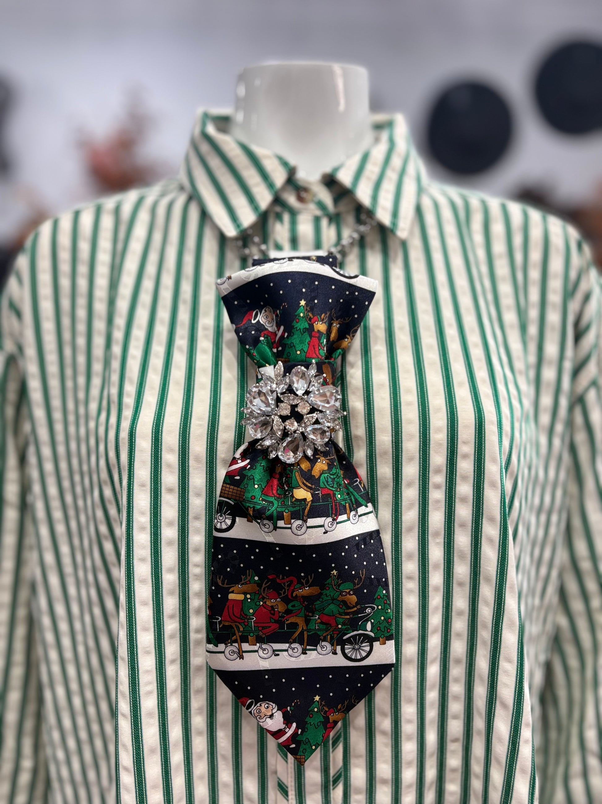 Make a bold statement this holiday season with the Simply Elegant Necktie Necklace featuring a sparkling crystal brooch. This upcycled necktie transforms into a captivating accessory that sparks conversation and spreads Christmas cheer. Perfect for parties, it adds a daring twist to your festive wardrobe while showcasing eco-friendly style. Stand out and celebrate with a unique piece that’s both fun and sophisticated.