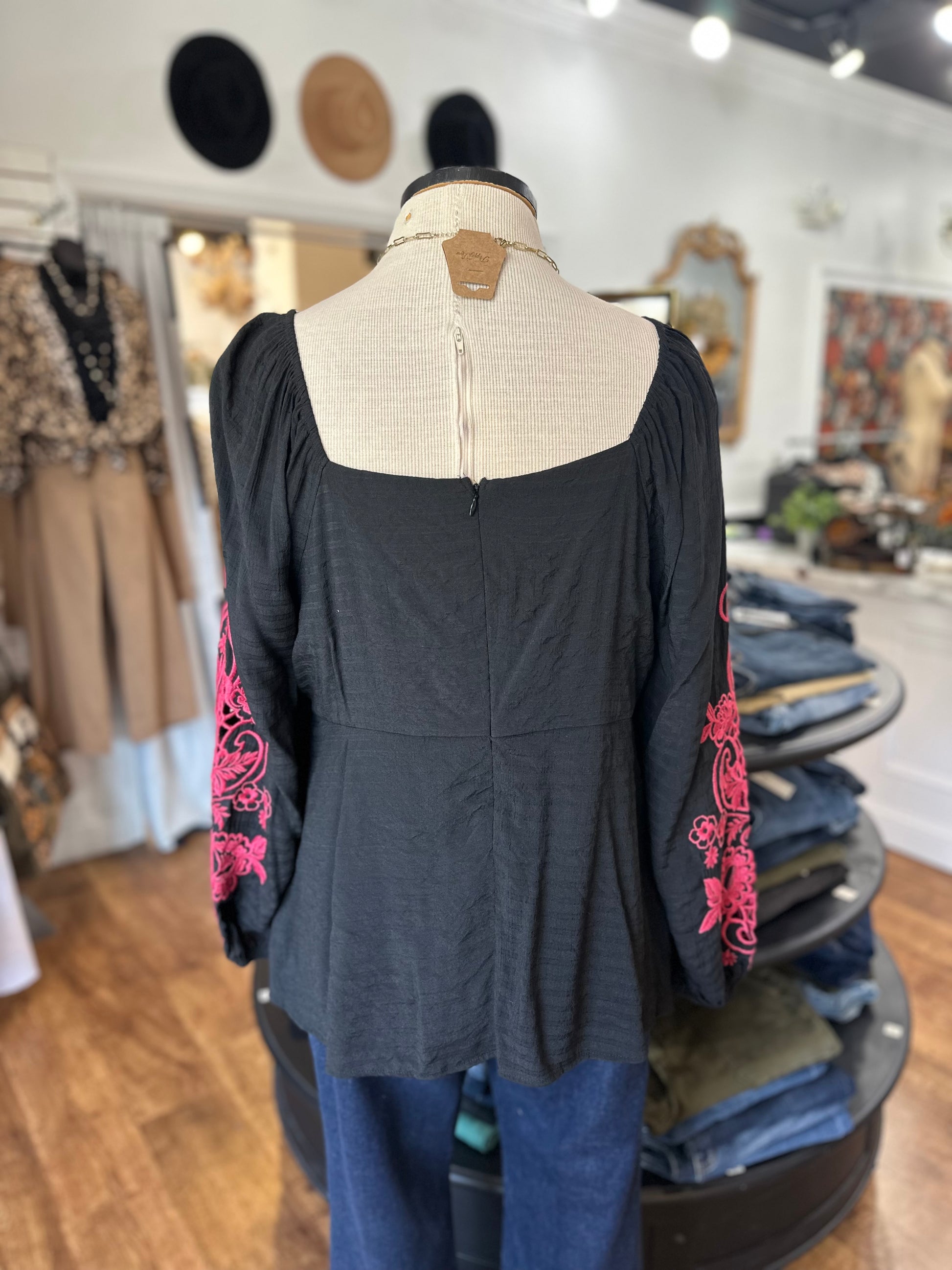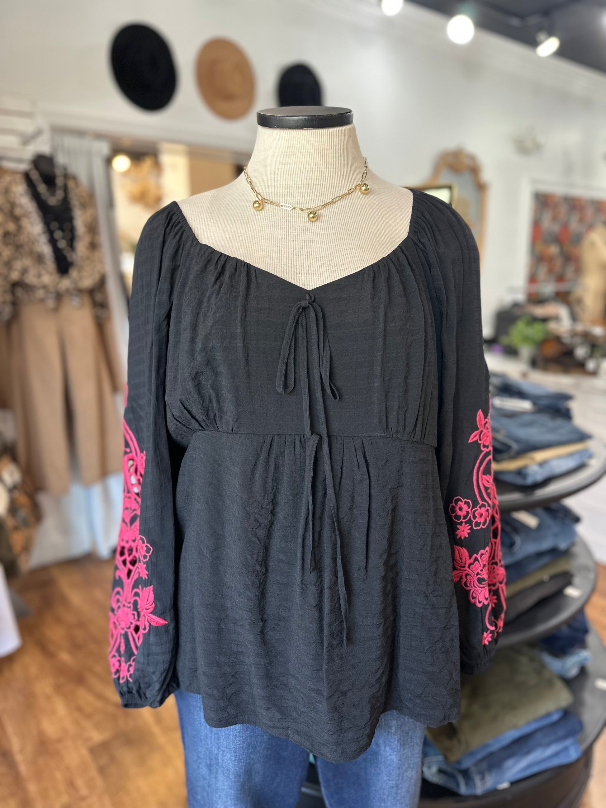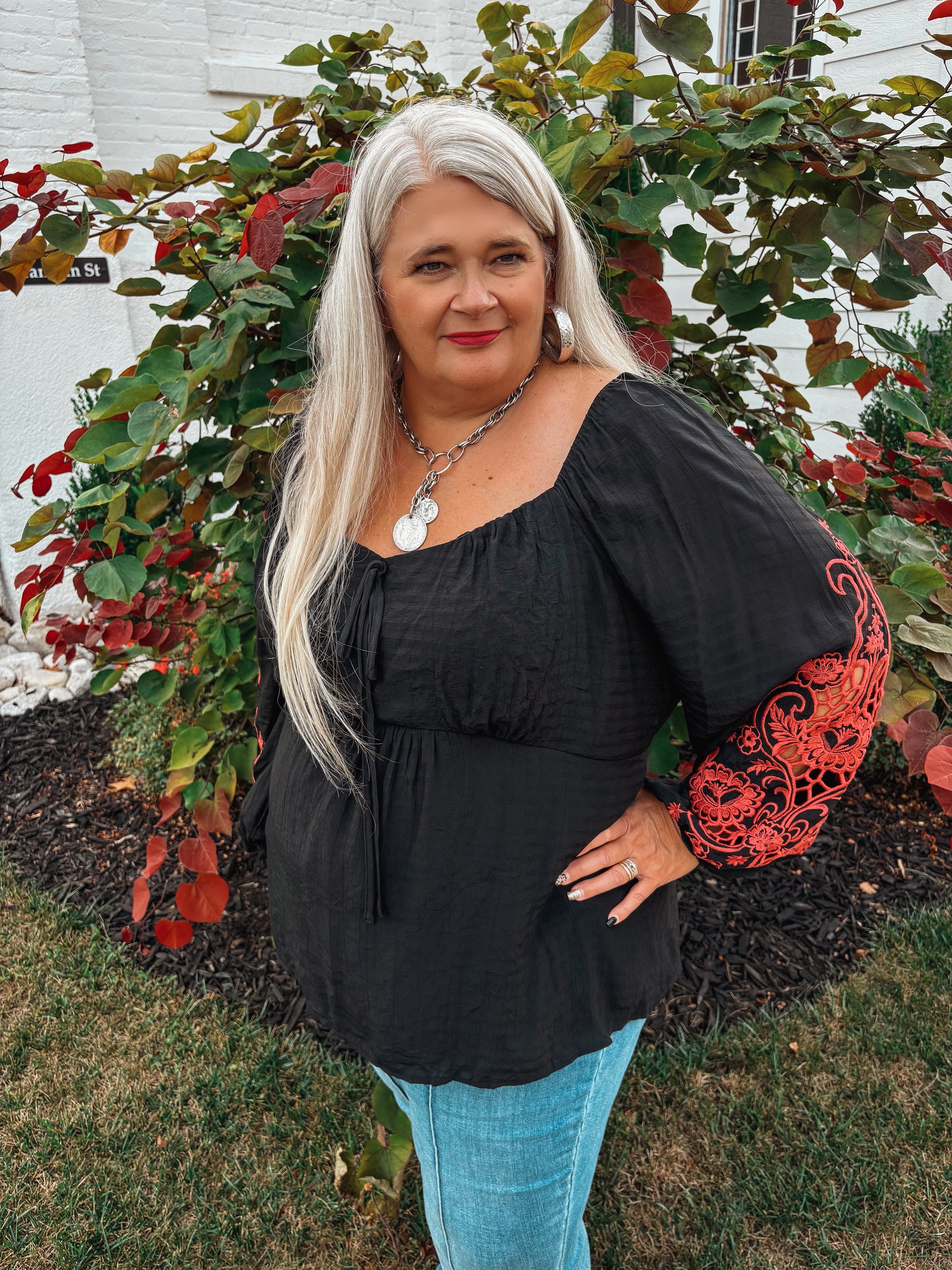 Linger in style with this peplum Stay Here Awhile Top! Featuring a flattering v-neckline, playful embroidered cutout sleeves, and a flowy babydoll waistline, this top is perfect for a night out. With its long sleeves and flowy fit, you'll be comfortable and chic all evening long.