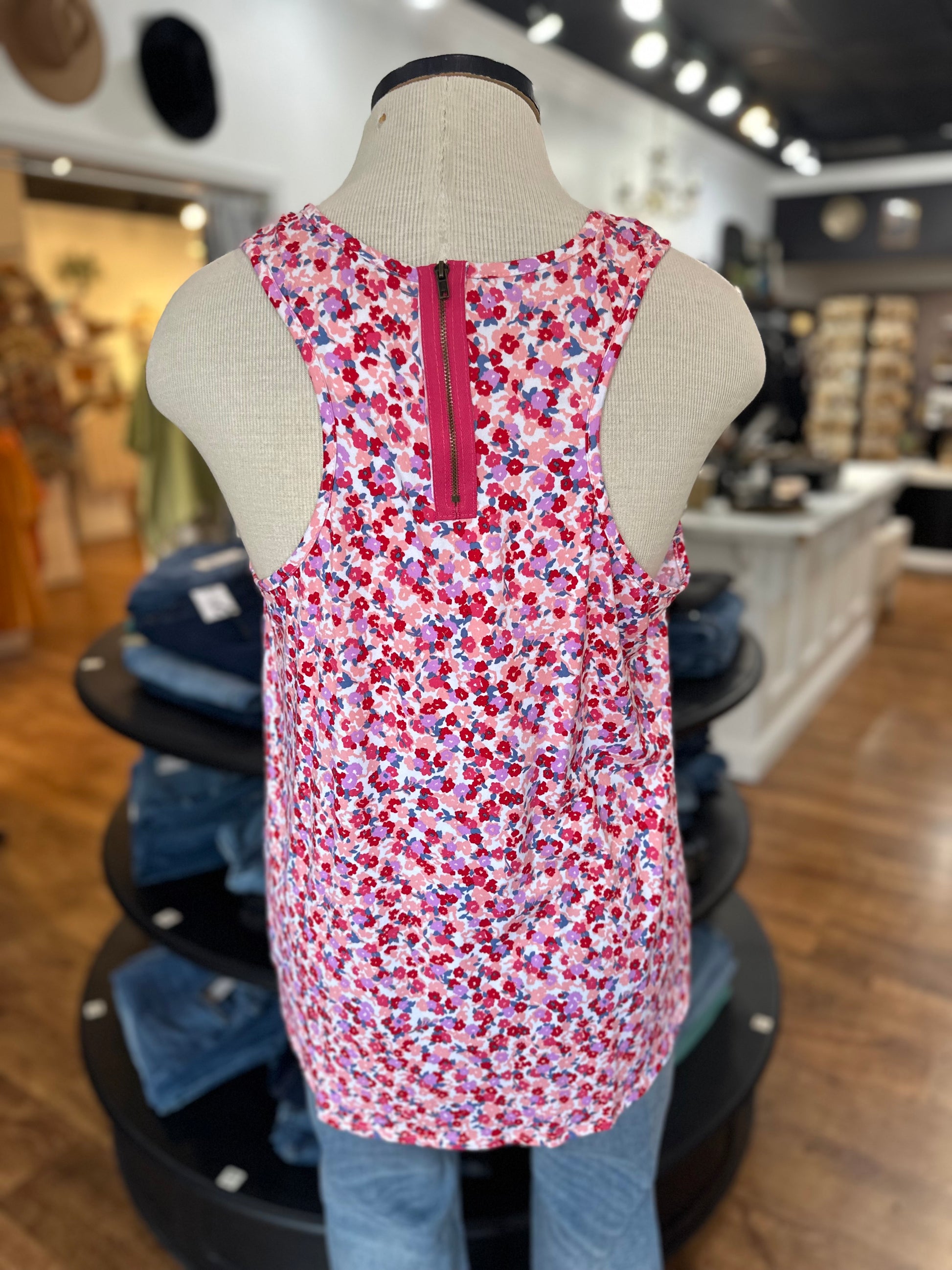 Turn heads in this bold floral tank that refuses to blend in. Lightweight and flowy, this sleeveless stunner features a show-stopping floral print that demands attention. The cheeky zip-back closure? Pure genius for those days when you want easy access without sacrificing style. Breathable fabric keeps you cool while you own every room you walk into. Whether you're hitting the town or keeping it casual, this versatile piece proves that taking risks has never looked so good.