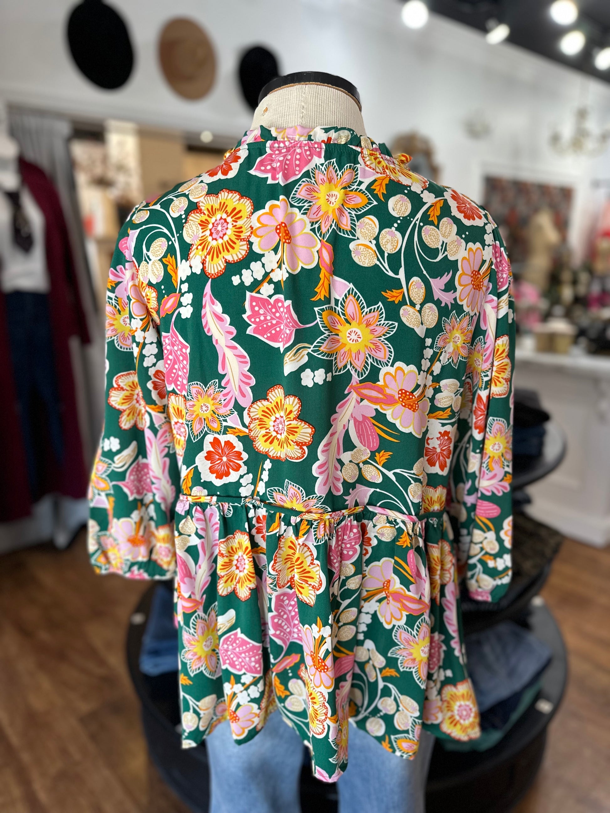 Embrace effortless style with this charming babydoll top, featuring a delicate floral print that brings springtime flair to your wardrobe. The flattering shift silhouette skims your figure beautifully, while the V-neckline adds a touch of sophistication. Long sleeves with elastic cuffs provide comfort and polish, making this piece perfect for layering or wearing solo. Whether you're heading to brunch or a casual day out, this top strikes the ideal balance between playful and put-together.