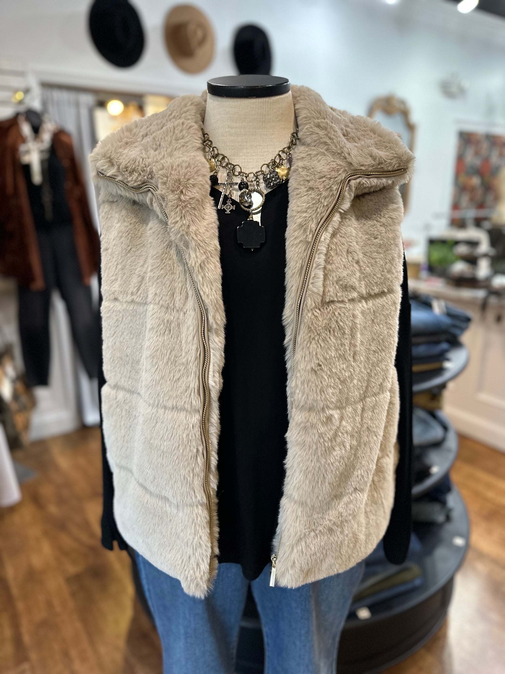 Wrap yourself in cozy charm with the Turn Of Events Fur Vest. This sleeveless gem features a sleek zipper front and a high neckline, making it perfect for layering on chilly days. Crafted from super soft faux fur, it adds a playful touch to any outfit while keeping you warm and stylish. Whether you're out on an adventure or just turning heads, this vest has you covered in fluffy fun.
