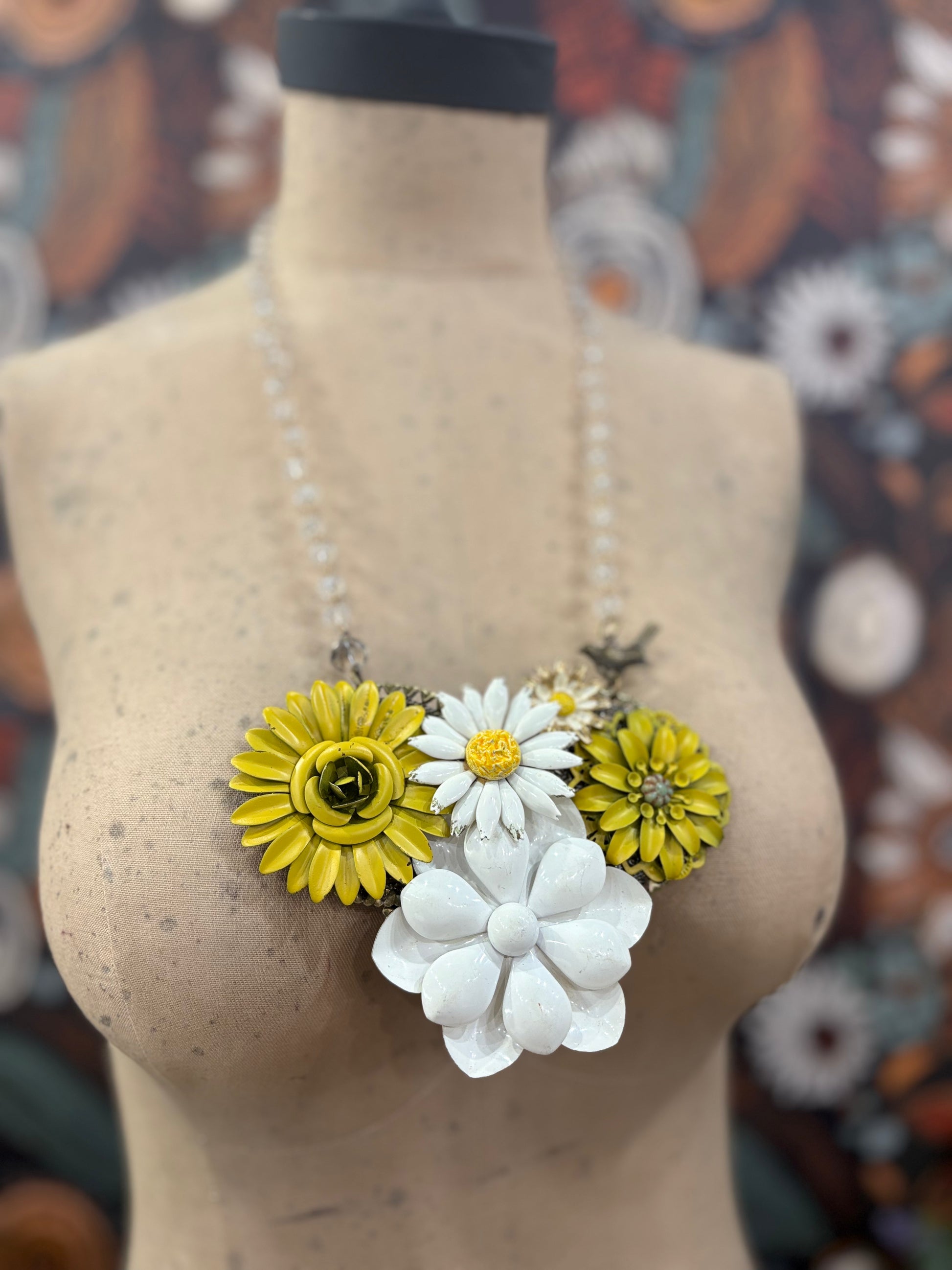Vintage Mod Flower Assemblage Necklace -Yellow & White