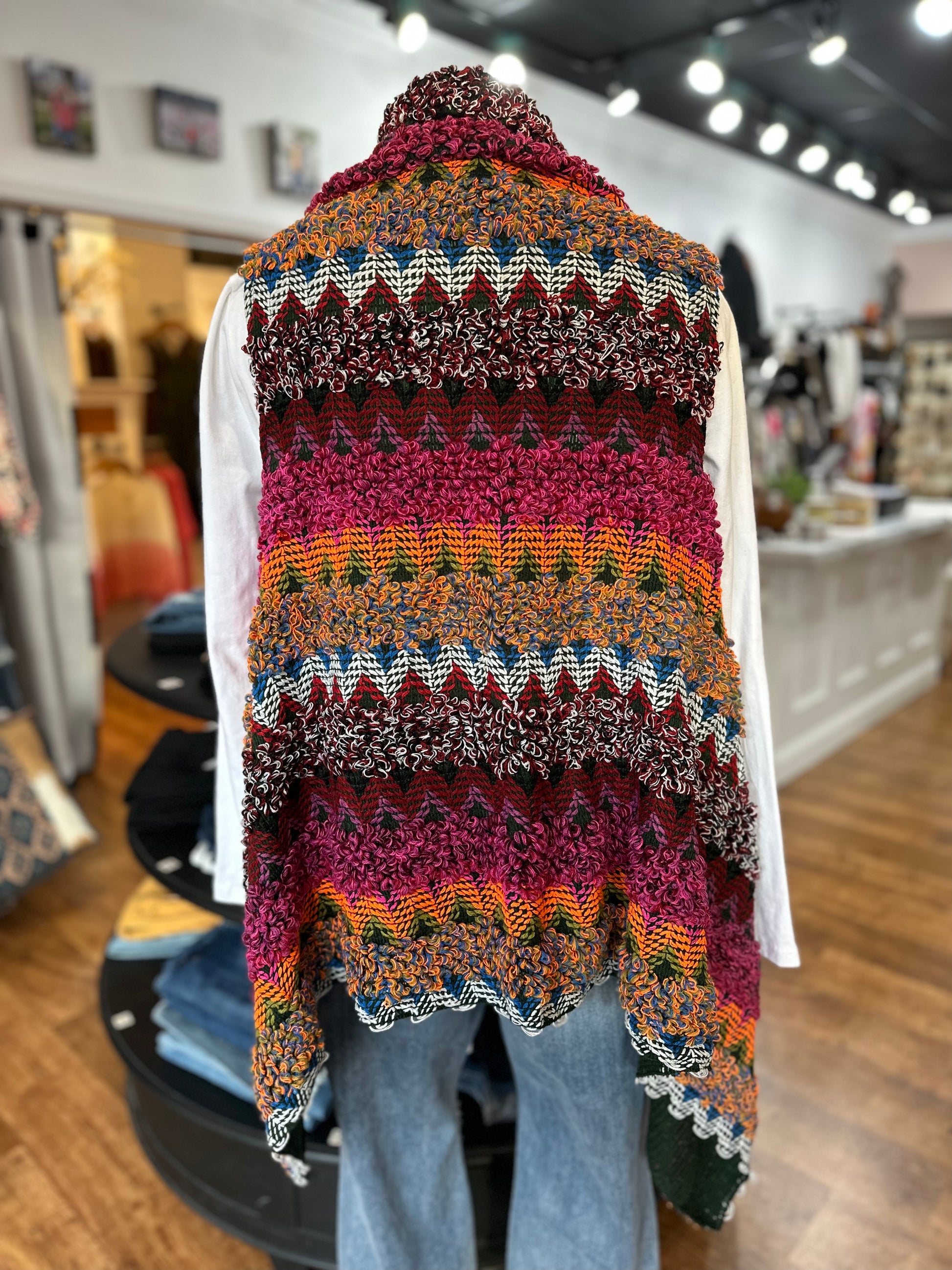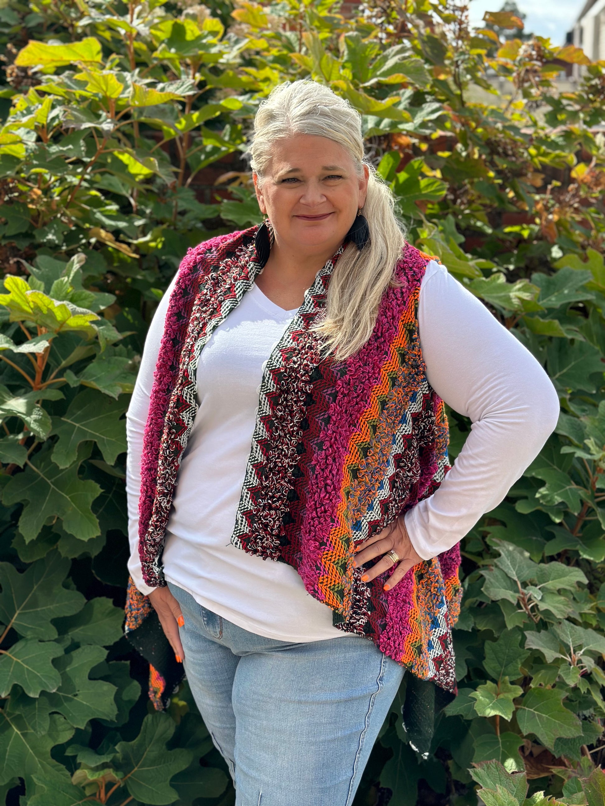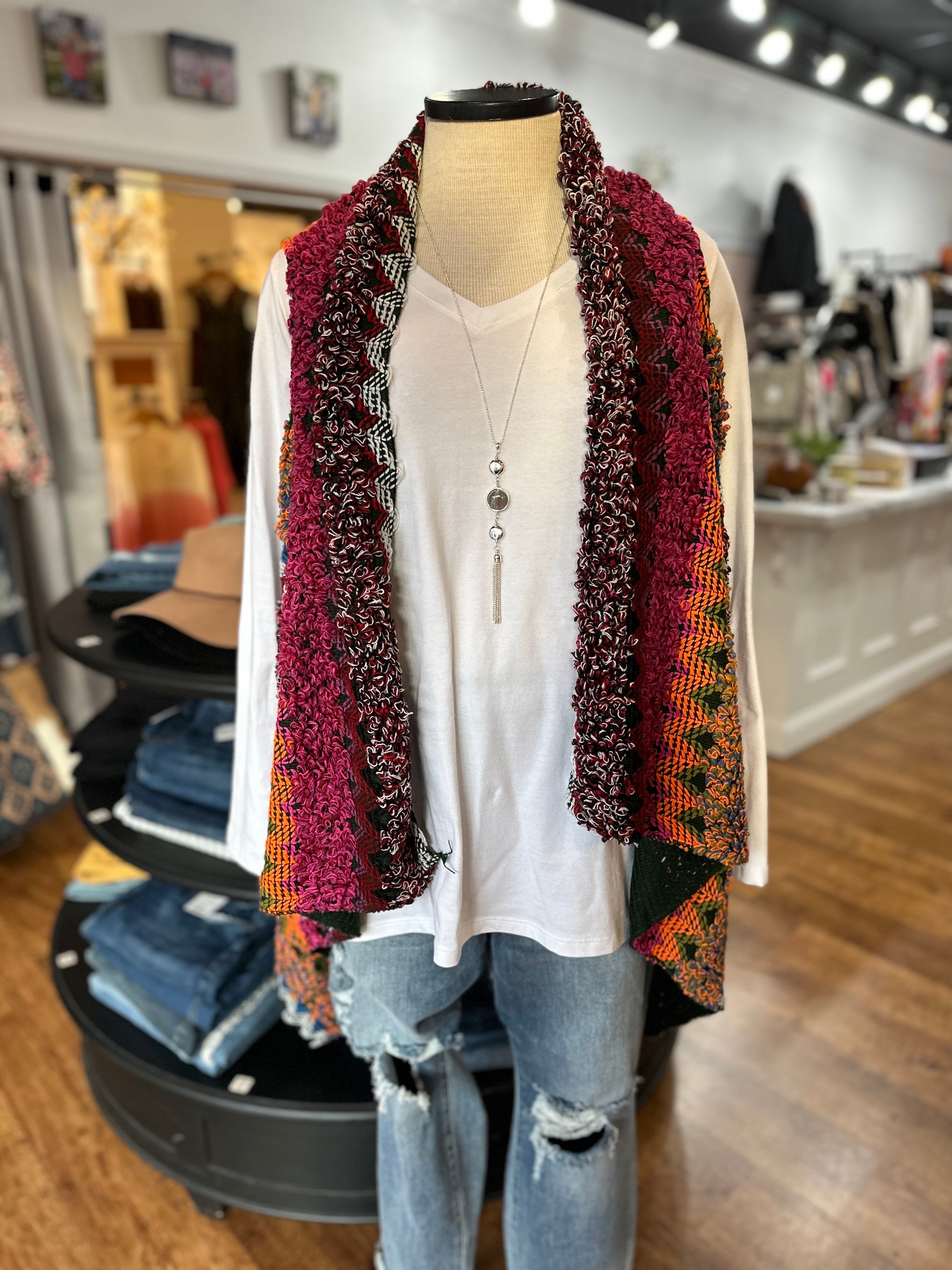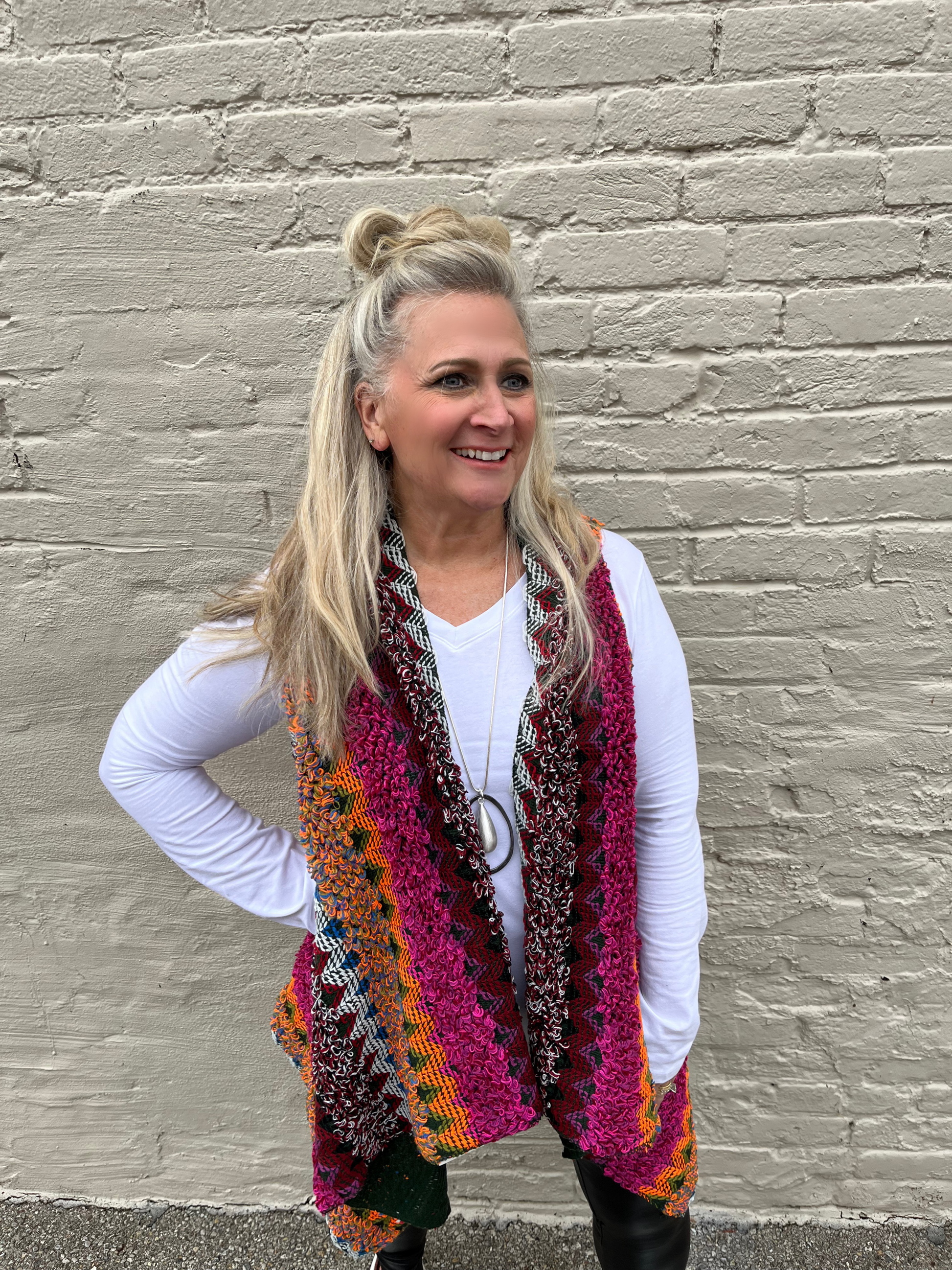 Yay! Vests are officially back! We love this oversized vest too! This vest will look great layered over a simple long sleeve tee, sweatshirts, or sweaters. The colors in this vest are vibrant and bold ~ absolutely gorgeous! There are so many different options for what you can pair with this! Don't miss out on this!